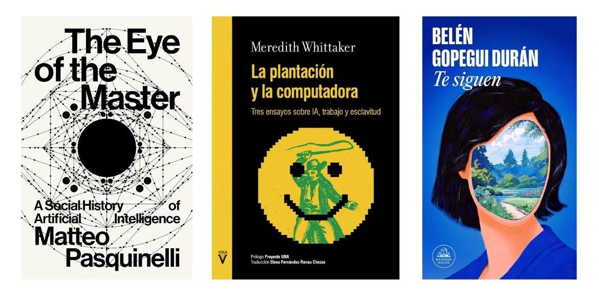 Ya que hablamos de lecturas, no nos resistimos a recomendarte algunas más. Si te interesa la Inteligencia Artificial, quizá te apetezca darle contexto con The Eye of the Master: A Social History of Artificial Intelligence, de Matteo Pasquinelli. Si prefieres reflexionar sobre los conflictos que plantea su desarrollo, puedes darle una oportunidad a La plantación y la computadora. Tres ensayos sobre IA, trabajo y esclavitud, de Meredith Whittaker. Y si eres más de novelas, Te siguen, de Belén Gopegui, te sumergirá mediante el género thriller en la reflexión sobre la relación con la tecnología y la cultura de la vigilancia.