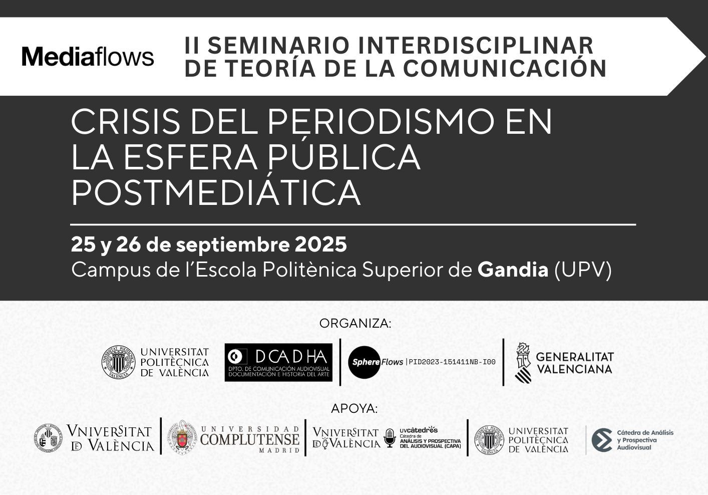 Recuerda que el II Seminario Interdisciplinar de Teoría de la Comunicación se celebrará poco después de volver de vacaciones. ¡El programa completo ya está disponible y la inscripción ya está abierta!